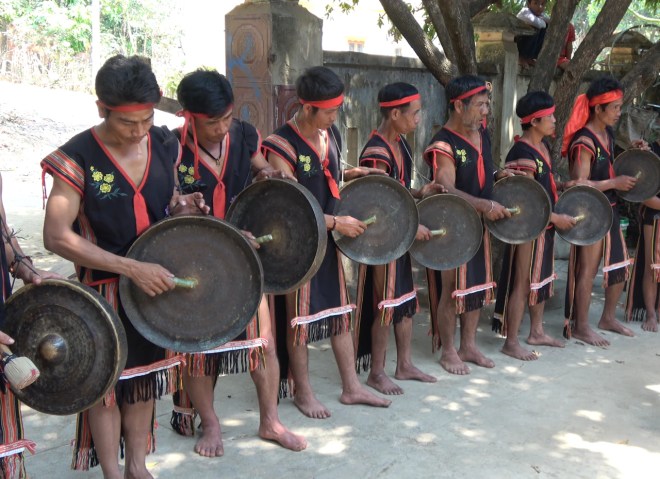 I gong, chiamati chiêng, sono ampiamente utilizzati nei rituali animisti e religiosi. Presso i gruppi etnici delle Highlands centrali (come i Ba Na, Gia Rai, E De), questi strumenti sono considerati esseri viventi dotati di spirito. Ogni gong ha una voce unica e custodisce una potenza ancestrale: non sorprende che vengano tramandati come eredità sacre. In certe comunità, la loro presenza è indispensabile per le cerimonie fondamentali come nei i riti di passaggio. Suonarli non è solo un atto musicale: è un dialogo profondo tra la comunità e le entità invisibili.