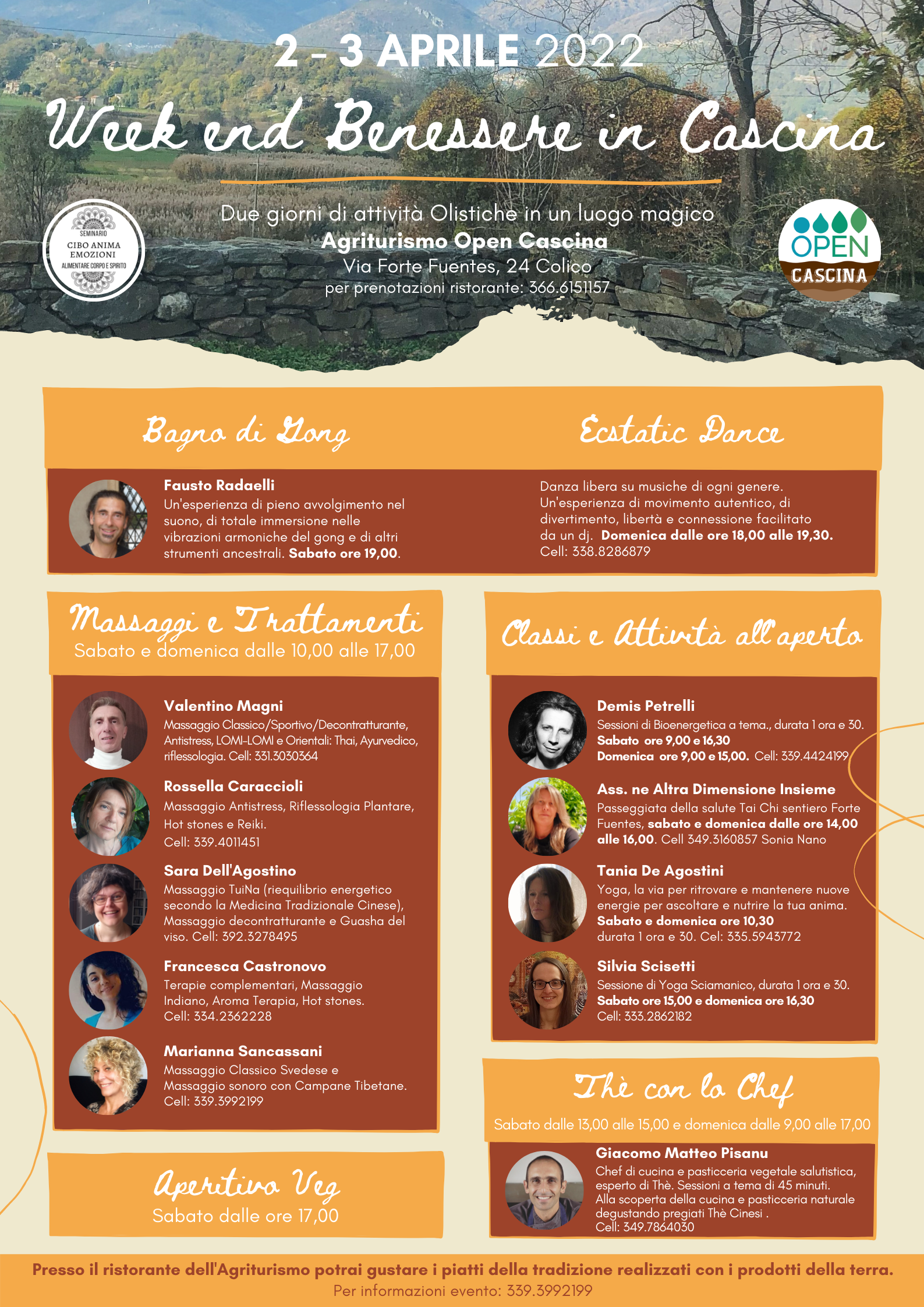 3 Aprile ore 18.00Ecstatic Dance all’aperto con cuffie ritrovo ore 17.30 presso Agriturismo Open Cascina, Via Forte Fuentes 24, Colico (CO) Info e prenotazioni Fausto: 3388286879