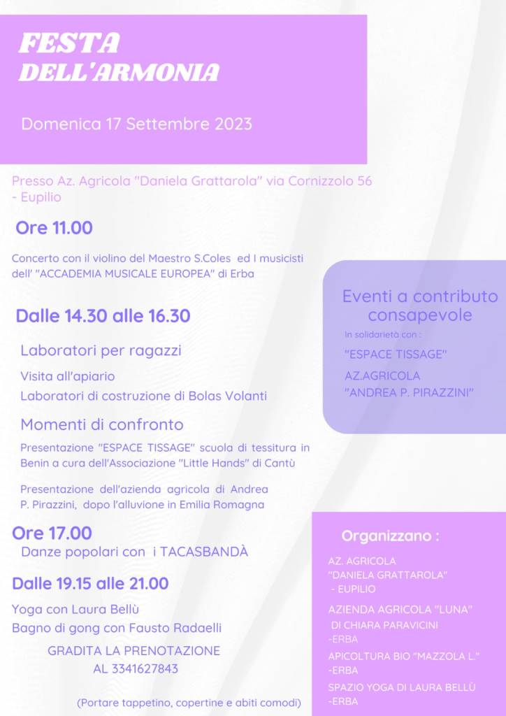 17 Settembre ore 19.15Bagno di Gong all’interno della “Festa dell’armonia” presso az Agricola “Daniela Grattarola” Via Cornizzolo 56, Eupilio (CO)